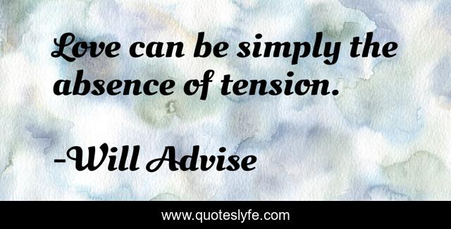 This page presents the quote "Love can be simply the absence of tension.". Author of this quote is Will Advise. This quote is about tension, love, simplicity, absence, friendship, affection,.