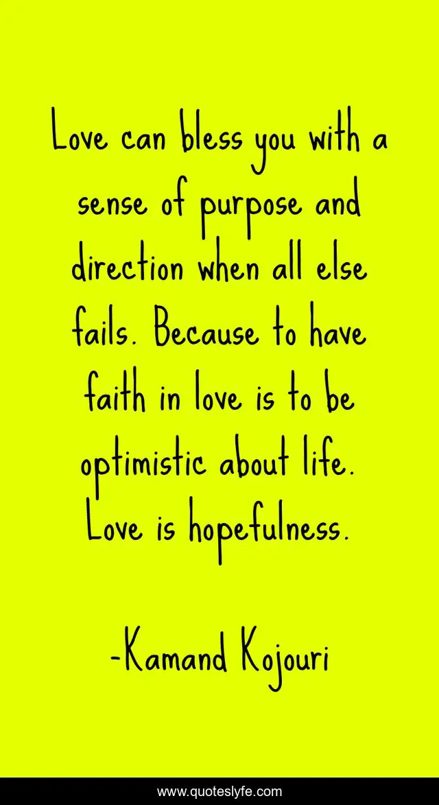 Love can bless you with a sense of purpose and direction when all else fails. Because to have faith in love is to be optimistic about life. Love is hopefulness.