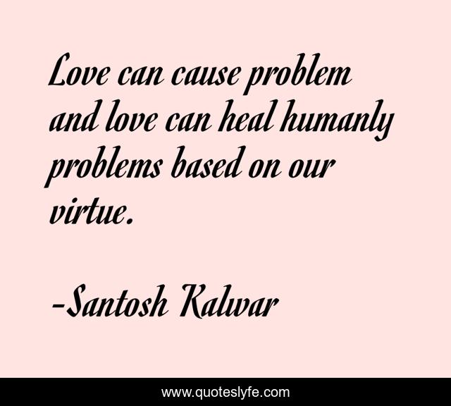 This page presents the quote "Love can cause problem and love can heal humanly problems based on our virtue.". Author of this quote is Santosh Kalwar. This quote is about romance, sadness, love, affection,.