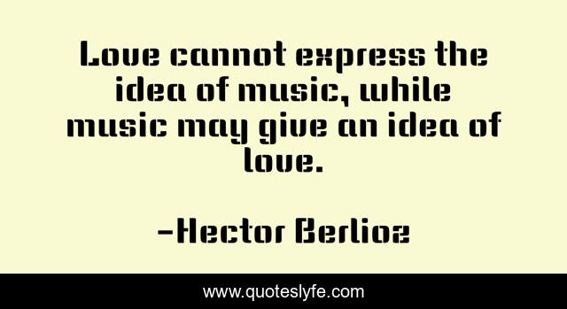 This page presents the quote "Love cannot express the idea of music, while music may give an idea of love.". Author of this quote is Hector Berlioz. This quote is about may, love, idea, affection,.