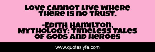 This page presents the quote "Love cannot live where there is no trust.". Author of this quote is Edith Hamilton, Mythology: Timeless Tales of Gods and Heroes. This quote is about relationships, mythology, love, cupid, trust, affection,.