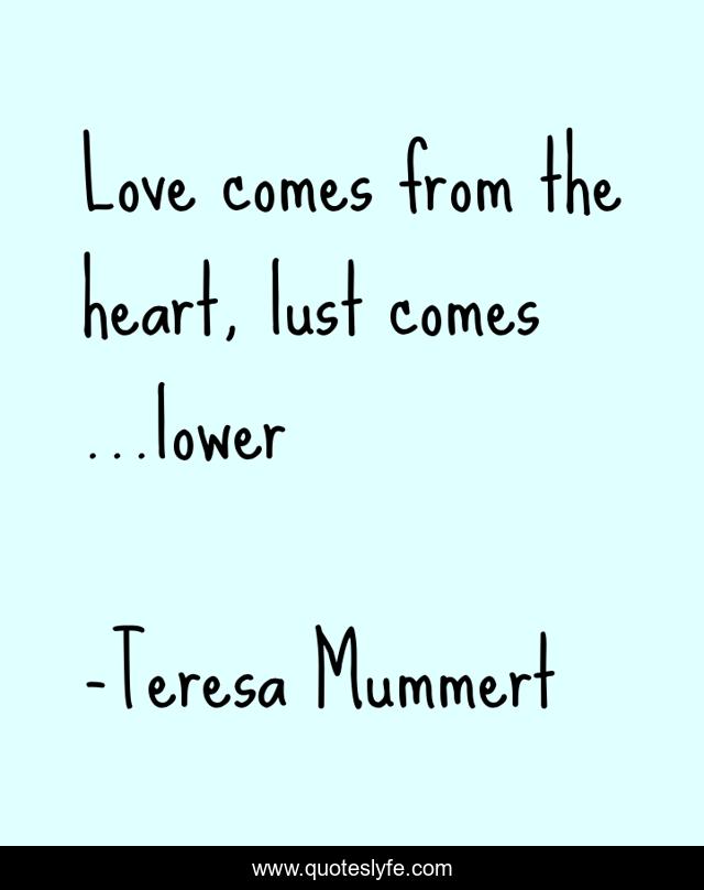 "Teresa Mummert Quotes." Quoteslyfe.com, 2025. Mon. 08 Dec. 2025. <https://www.quoteslyfe.com/quote/Love-comes-from-the-heart-lust-comes-147496>.