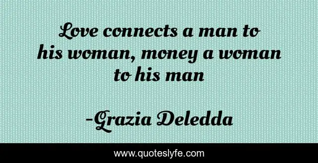 "Grazia Deledda Quotes." Quoteslyfe.com, 2025. Sun. 07 Dec. 2025. <https://www.quoteslyfe.com/quote/Love-connects-a-man-to-his-woman-221665>.