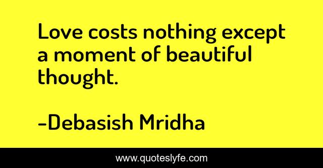 This page presents the quote "Love costs nothing except a moment of beautiful thought.". Author of this quote is Debasish Mridha. This quote is about life, love, knowledge, inspirational, intelligence, philosophy, wisdom, quotes, affection,.