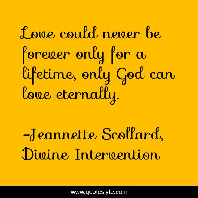 This page presents the quote "Love could never be forever only for a lifetime, only God can love eternally.". Author of this quote is Jeannette Scollard, Divine Intervention. This quote is about love-song, poetry,.