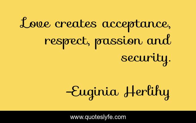 This page presents the quote "Love creates acceptance, respect, passion and security.". Author of this quote is Euginia Herlihy. .