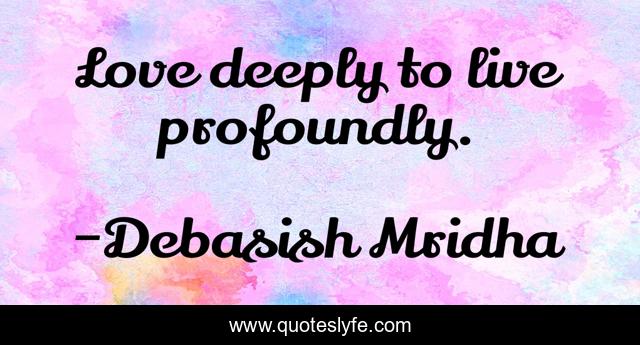 "Debasish Mridha Quotes." Quoteslyfe.com, 2025. Mon. 08 Dec. 2025. <https://www.quoteslyfe.com/quote/Love-deeply-to-live-profoundly-135625>.