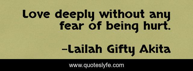This page presents the quote "Love deeply without any fear of being hurt.". Author of this quote is Lailah Gifty Akita. This quote is about love, affection,.