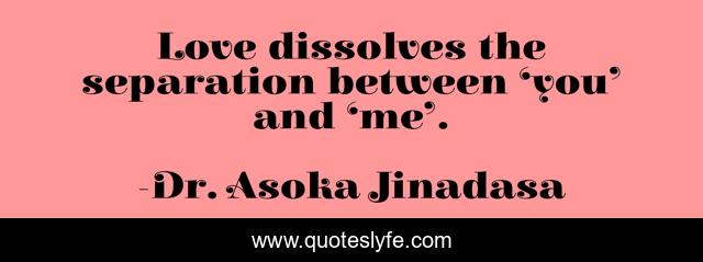 This page presents the quote "Love dissolves the separation between ‘you’ and ‘me’.". Author of this quote is Dr. Asoka Jinadasa. This quote is about love, affection,.