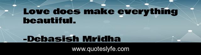 "Debasish Mridha Quotes." Quoteslyfe.com, 2025. Sat. 06 Dec. 2025. <https://www.quoteslyfe.com/quote/Love-does-make-everything-beautiful-69860>.