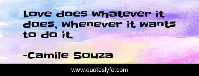 "Camile Souza Quotes." Quoteslyfe.com, 2025. Sat. 06 Dec. 2025. <https://www.quoteslyfe.com/quote/Love-does-whatever-it-does-whenever-it-138267>.