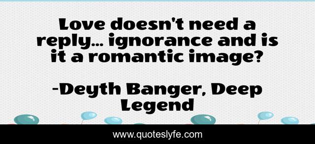 This page presents the quote "Love doesn't need a reply... ignorance and is it a romantic image?". Author of this quote is Deyth Banger, Deep Legend. This quote is about image, ignorance, romantic,.