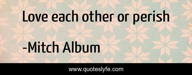 This page presents the quote "Love each other or perish". Author of this quote is Mitch Album. This quote is about life, death, memoir, inspiratonal,.