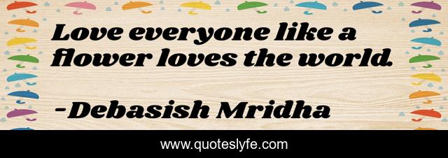 This page presents the quote "Love everyone like a flower loves the world.". Author of this quote is Debasish Mridha. This quote is about life, love, knowledge, inspirational, intelligence, philosophy, wisdom, quotes, affection,.