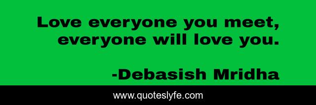 This page presents the quote "Love everyone you meet, everyone will love you.". Author of this quote is Debasish Mridha. This quote is about life, love, knowledge, inspirational, intelligence, philosophy, wisdom, quotes, affection,.