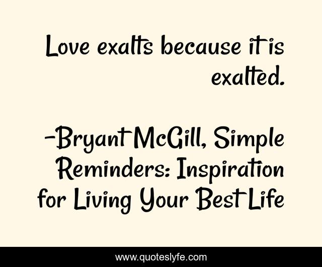 "Bryant McGill, Simple Reminders: Inspiration for Living Your Best Life Quotes." Quoteslyfe.com, 2025. Sat. 06 Dec. 2025. <https://www.quoteslyfe.com/quote/Love-exalts-because-it-is-exalted-198678>.