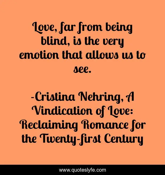 "Cristina Nehring, A Vindication of Love: Reclaiming Romance for the Twenty-first Century Quotes." Quoteslyfe.com, 2025. Fri. 05 Dec. 2025. <https://www.quoteslyfe.com/quote/Love-far-from-being-blind-is-the-197303>.