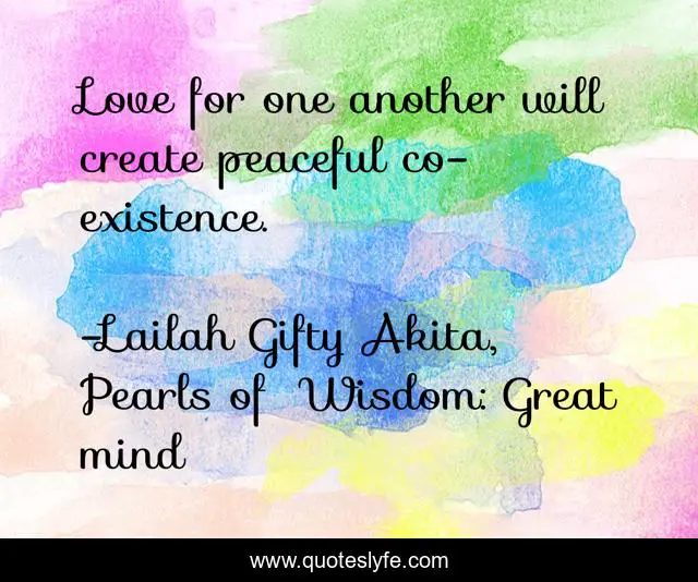 "Lailah Gifty Akita, Pearls of Wisdom: Great mind Quotes." Quoteslyfe.com, 2025. Fri. 05 Dec. 2025. <https://www.quoteslyfe.com/quote/Love-for-one-another-will-create-peaceful-216745>.