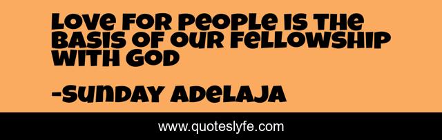 This page presents the quote "Love for people is the basis of our fellowship with God". Author of this quote is Sunday Adelaja. This quote is about love, people, money, principles, employment, worship, destiny, service, god,.