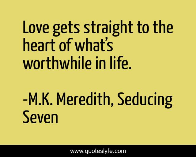 This page presents the quote "Love gets straight to the heart of what’s worthwhile in life.". Author of this quote is M.K. Meredith, Seducing Seven. .