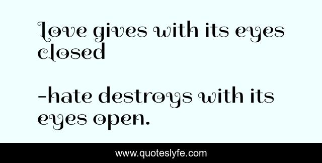 "hate destroys with its eyes open. Quotes." Quoteslyfe.com, 2025. Sat. 06 Dec. 2025. <https://www.quoteslyfe.com/quote/Love-gives-with-its-eyes-closed-49964>.