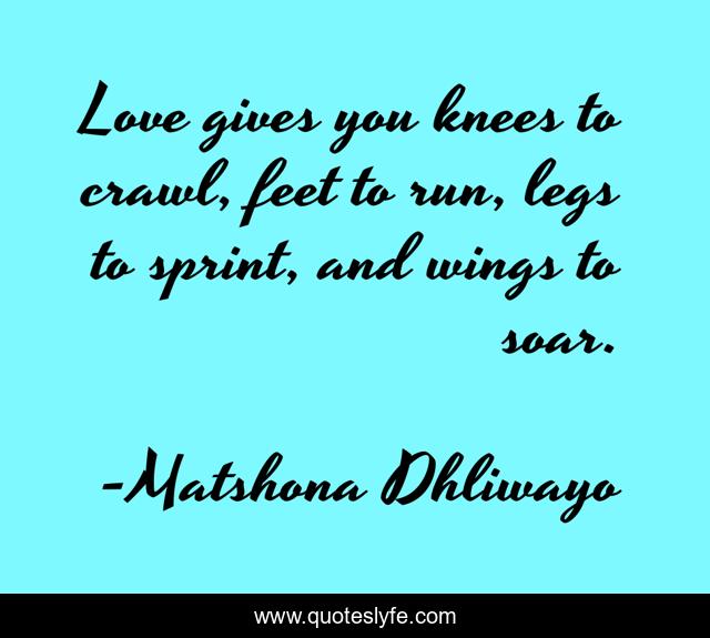 "Matshona Dhliwayo Quotes." Quoteslyfe.com, 2025. Tue. 09 Dec. 2025. <https://www.quoteslyfe.com/quote/Love-gives-you-knees-to-crawl-feet-49127>.