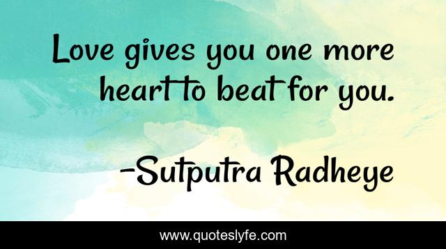 This page presents the quote "Love gives you one more heart to beat for you.". Author of this quote is Sutputra Radheye. .