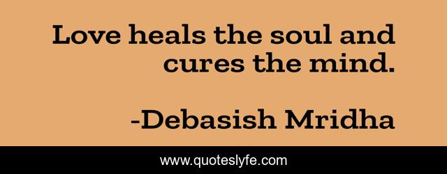 This page presents the quote "Love heals the soul and cures the mind.". Author of this quote is Debasish Mridha. This quote is about life, love, knowledge, inspirational, intelligence, philosophy, wisdom, quotes, affection,.