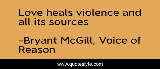 "Bryant McGill, Voice of Reason Quotes." Quoteslyfe.com, 2025. Fri. 05 Dec. 2025. <https://www.quoteslyfe.com/quote/Love-heals-violence-and-all-its-sources-186792>.