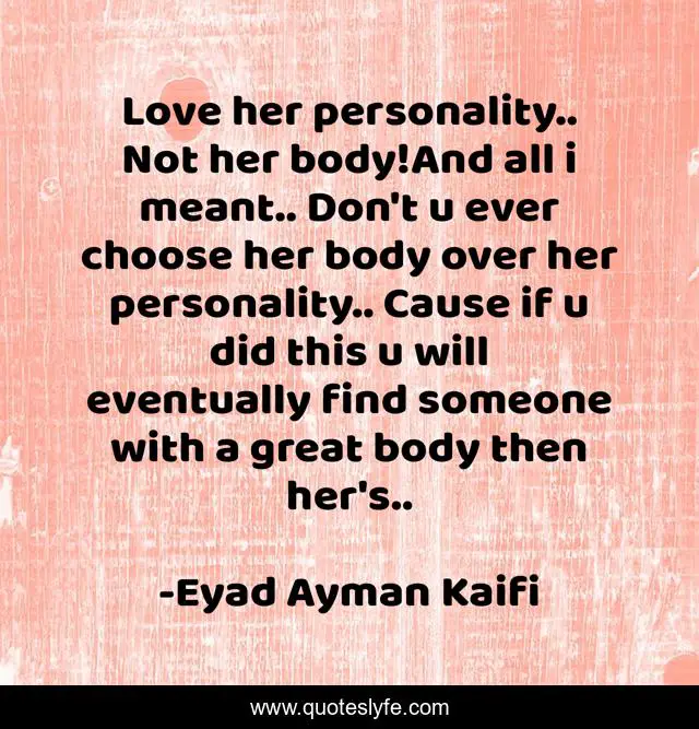 This page presents the quote "Love her personality.. Not her body!And all i meant.. Don't u ever choose her body over her personality.. Cause if u did this u will eventually find someone with a great body then her's..". Author of this quote is Eyad Ayman Kaifi. This quote is about love, choose, affection, personality,.