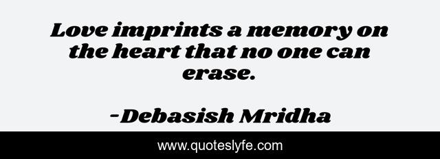 This page presents the quote "Love imprints a memory on the heart that no one can erase.". Author of this quote is Debasish Mridha. This quote is about no-one-can-erase-your-memories, love, philosophy, debasish-mridha, quotes, debasish-mridha-md, inspirational, enthusiasm, love-and-memories,.