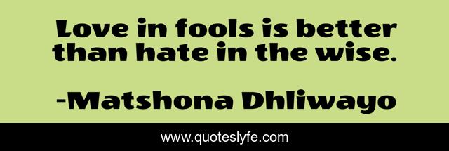 "Matshona Dhliwayo Quotes." Quoteslyfe.com, 2025. Sun. 14 Dec. 2025. <https://www.quoteslyfe.com/quote/Love-in-fools-is-better-than-hate-48608>.