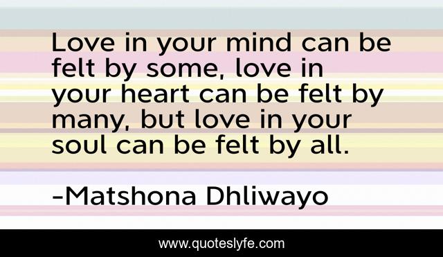 "Matshona Dhliwayo Quotes." Quoteslyfe.com, 2025. Tue. 09 Dec. 2025. <https://www.quoteslyfe.com/quote/Love-in-your-mind-can-be-felt-48657>.