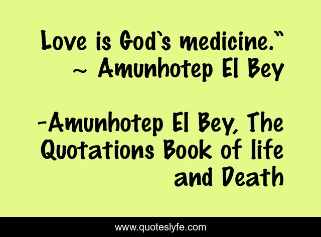 "Amunhotep El Bey, The Quotations Book of life and Death Quotes." Quoteslyfe.com, 2025. Mon. 08 Dec. 2025. <https://www.quoteslyfe.com/quote/Love-is-God-s-medicine-Amunhotep-El-22201>.
