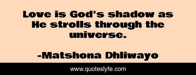 "Matshona Dhliwayo Quotes." Quoteslyfe.com, 2025. Fri. 05 Dec. 2025. <https://www.quoteslyfe.com/quote/Love-is-God-s-shadow-as-He-121064>.