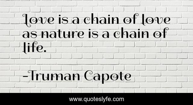 This page presents the quote "Love is a chain of love as nature is a chain of life.". Author of this quote is Truman Capote. This quote is about life, love, affection, love is,.