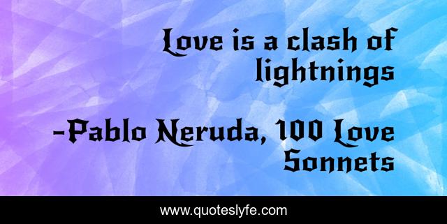 "Pablo Neruda, 100 Love Sonnets Quotes." Quoteslyfe.com, 2025. Mon. 08 Dec. 2025. <https://www.quoteslyfe.com/quote/Love-is-a-clash-of-lightnings-24420>.