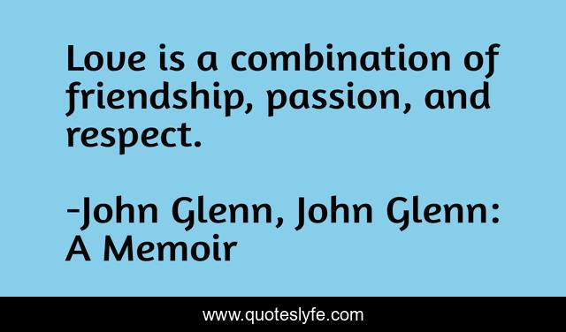 This page presents the quote "Love is a combination of friendship, passion, and respect.". Author of this quote is John Glenn, John Glenn: A Memoir. This quote is about marriage-advice, love, affection,.
