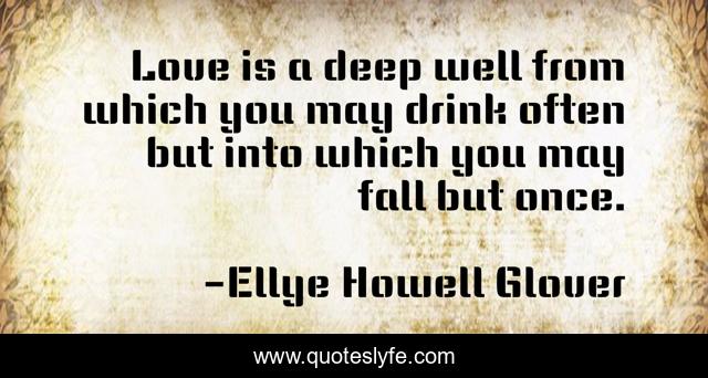 This page presents the quote "Love is a deep well from which you may drink often but into which you may fall but once.". Author of this quote is Ellye Howell Glover. .