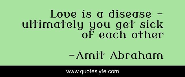 "Amit Abraham Quotes." Quoteslyfe.com, 2025. Mon. 08 Dec. 2025. <https://www.quoteslyfe.com/quote/Love-is-a-disease-ultimately-you-get-221758>.