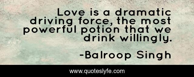 This page presents the quote "Love is a dramatic driving force, the most powerful potion that we drink willingly.". Author of this quote is Balroop Singh. This quote is about love, power-of-love, affection,.