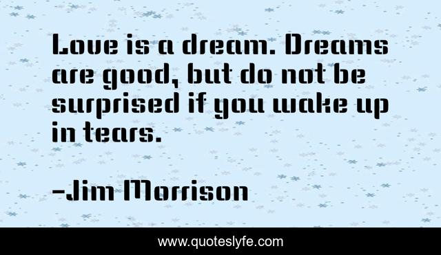 This page presents the quote "Love is a dream. Dreams are good, but do not be surprised if you wake up in tears.". Author of this quote is Jim Morrison. This quote is about love, dreams, affection,.