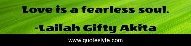 This page presents the quote "Love is a fearless soul.". Author of this quote is Lailah Gifty Akita. This quote is about love, fearless, inspirational, soil, enthusiasm, affection,.