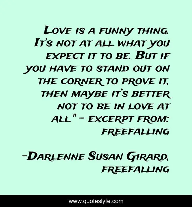 "Darlenne Susan Girard, freefalling Quotes." Quoteslyfe.com, 2025. Sat. 06 Dec. 2025. <https://www.quoteslyfe.com/quote/Love-is-a-funny-thing-It-s-210280>.