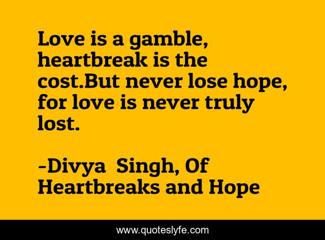 "Divya Singh, Of Heartbreaks and Hope Quotes." Quoteslyfe.com, 2025. Sat. 06 Dec. 2025. <https://www.quoteslyfe.com/quote/Love-is-a-gamble-heartbreak-is-the-130137>.