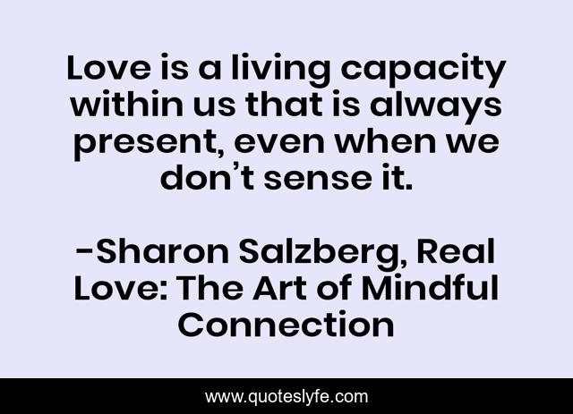 This page presents the quote "Love is a living capacity within us that is always present, even when we don’t sense it.". Author of this quote is Sharon Salzberg, Real Love: The Art of Mindful Connection. This quote is about relationships, love, mindfulness, meditation, real-love, affection,.