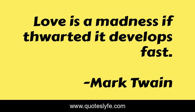This page presents the quote "Love is a madness if thwarted it develops fast.". Author of this quote is Mark Twain. .