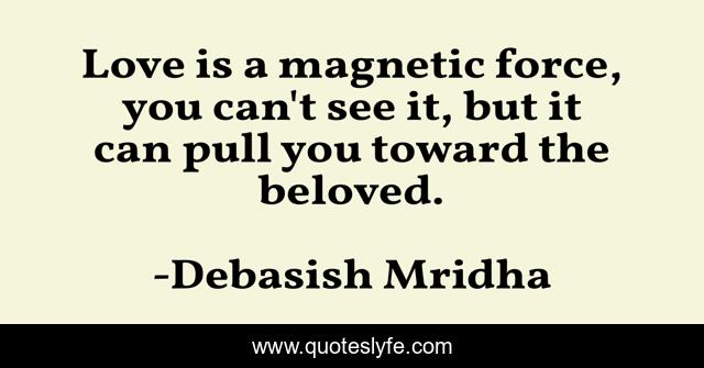 This page presents the quote "Love is a magnetic force, you can't see it, but it can pull you toward the beloved.". Author of this quote is Debasish Mridha. This quote is about life, love, knowledge, inspirational, intelligence, philosophy, wisdom, quotes, affection,.