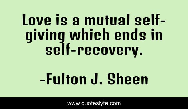 This page presents the quote "Love is a mutual self-giving which ends in self-recovery.". Author of this quote is Fulton J. Sheen. This quote is about mutual, which, love is,.