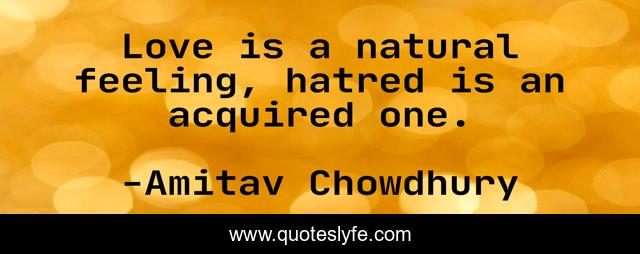 This page presents the quote "Love is a natural feeling, hatred is an acquired one.". Author of this quote is Amitav Chowdhury. This quote is about hate, philosophy, love, affection, feelings,.